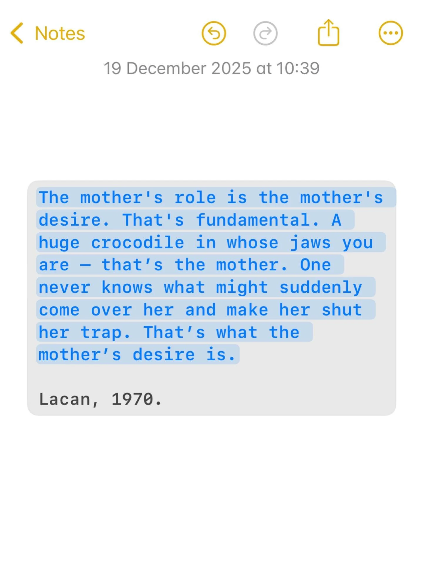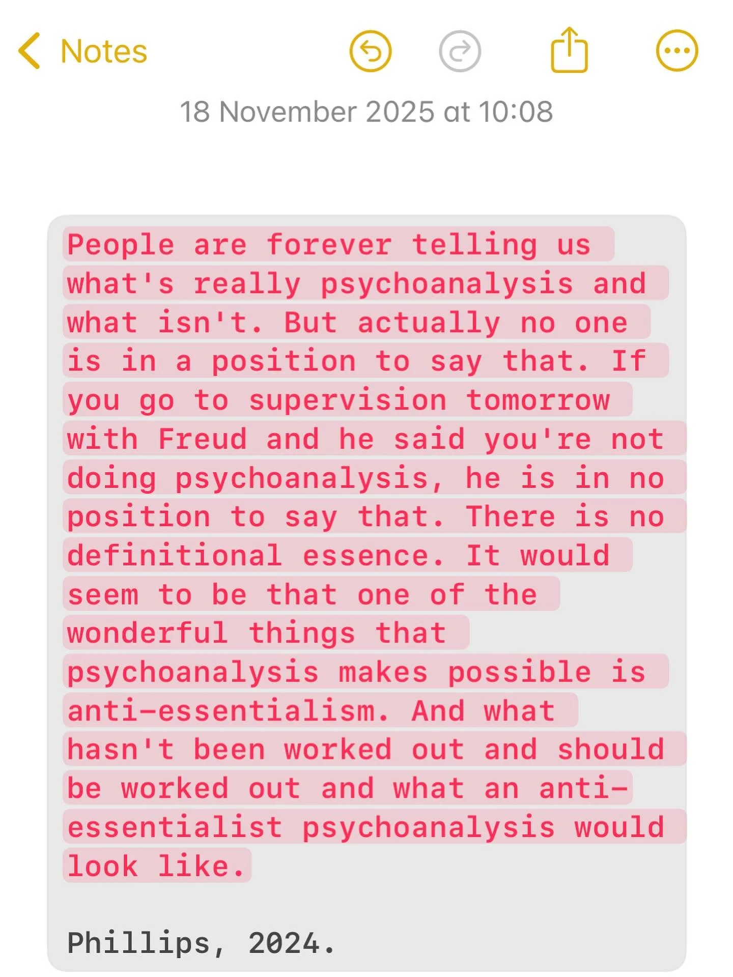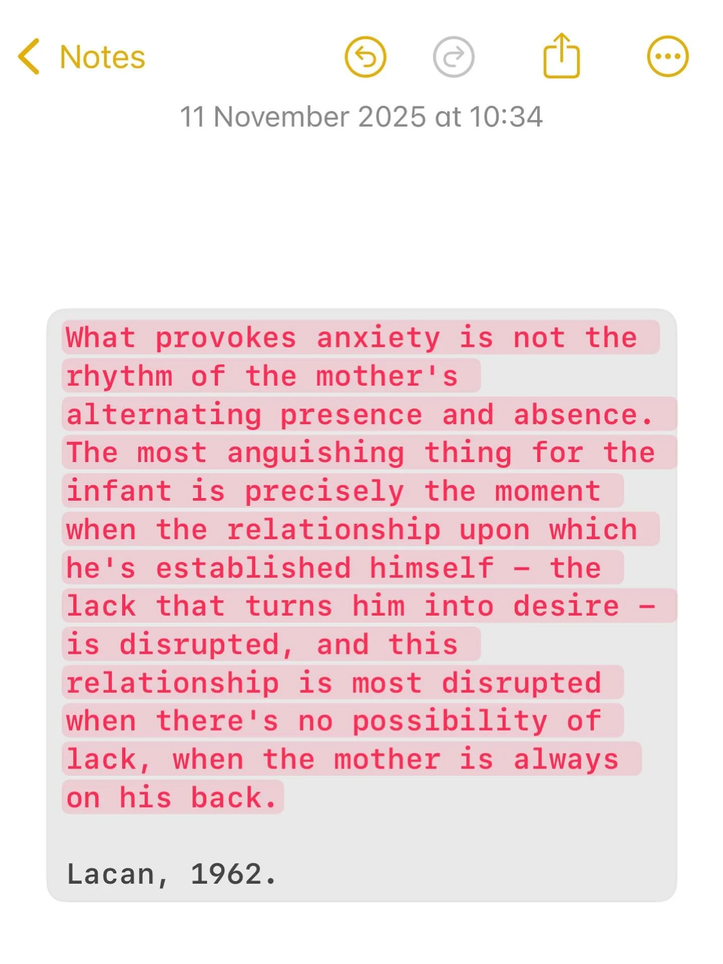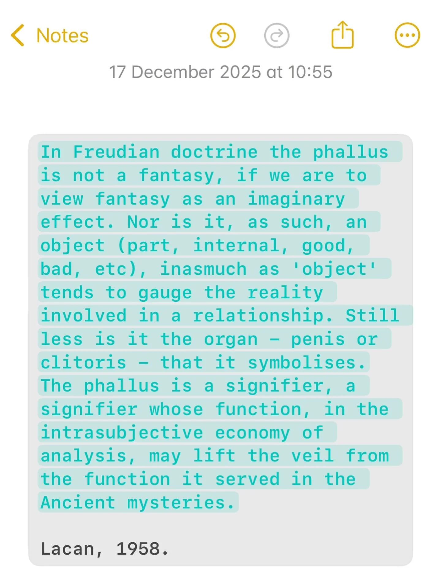 An avid interest in Lacanian psychoanalysis, which explores how the mind is structured by language.